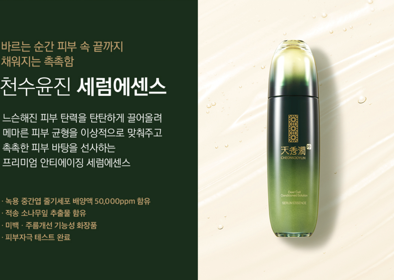 천수윤진은 녹용 유래의 강한 생명력으로 속부터 우러나는 궁극의 윤기를 부여하는 스킨케어입니다. 천수윤진에 대해서 알아보겠습니다.
